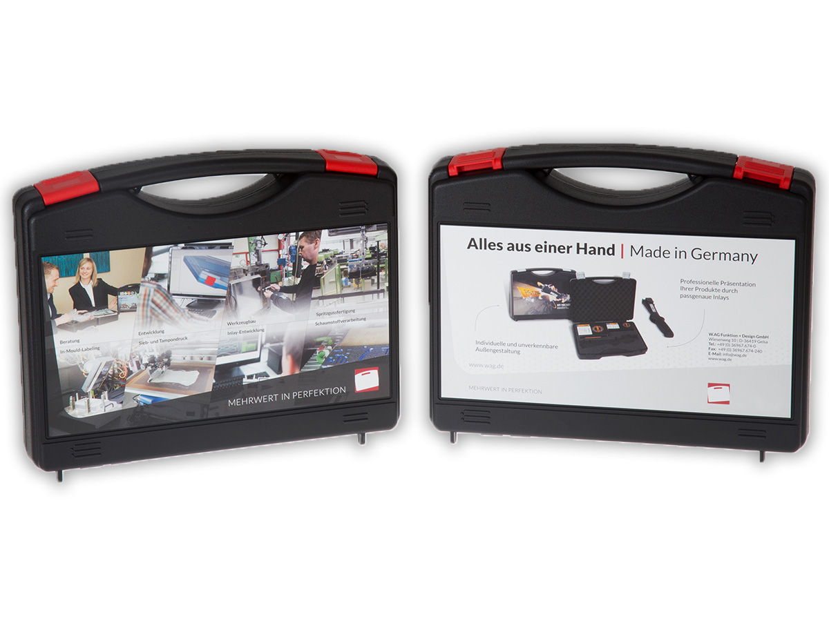 IML-etiketter fremstilles ved hjælp af en 4c offsetmetode, dvs. en etiketudskrivningsmetode, der tilbyder kuffert farvekoordination. Print venlige overfladearealer, som er unik for hver enkelt kuffert størrelse. For eksempel tilbyder den innovative TWIST-kuffert et design, der giver det største printareal, perfekt egnet til total overflade printning.