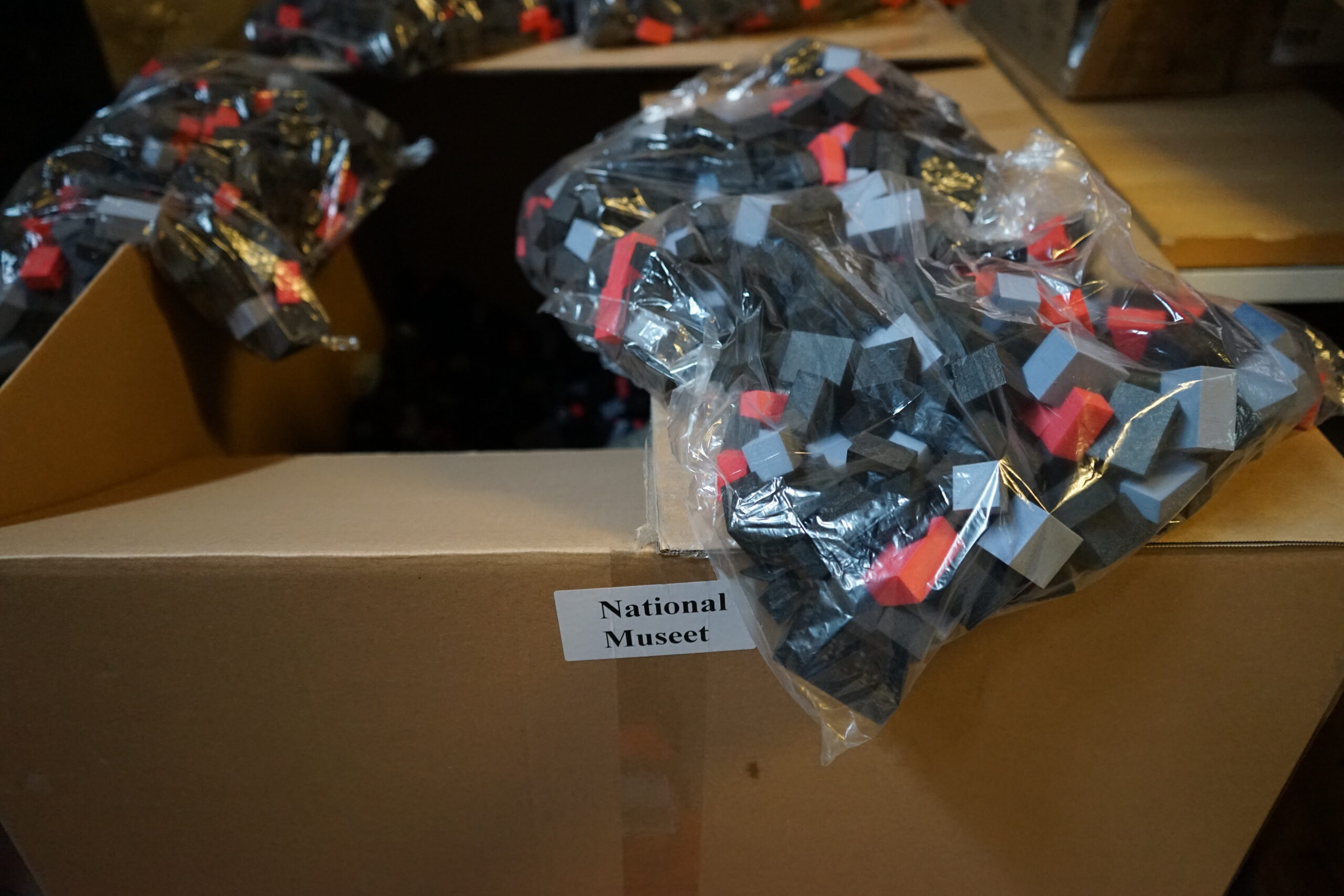 ”Vi har millioner af kunstskatte, og der kan gå flere årtier imellem at vi får gennemgået alt vores kunst, fortæller Frederik, og fortsætter; Vi er i gang med en større proces, at registrere alt og tage billeder af alt, inden vi skal flytte ind på Fællesmagasin. I denne proces er der også en del af vores kunstskatte, som skal pakkes om og beskyttes bedre. Tidligere brugte vi stjerneformede pakkechips i Polystyren, som vi alle kender fra når vi f.eks. køber et nyt tv eller modtager varer pakket i kasser hvor der er lidt luft omkring.