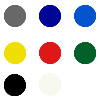 Standard farverene er Sort, Rød, Hvid, Grå, Mørkeblå, Blå, Gul og Grøn.