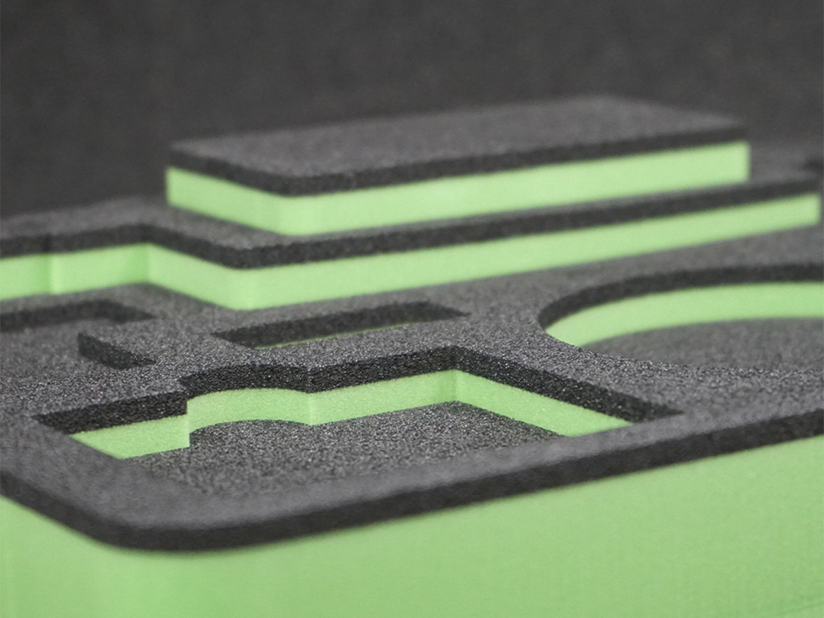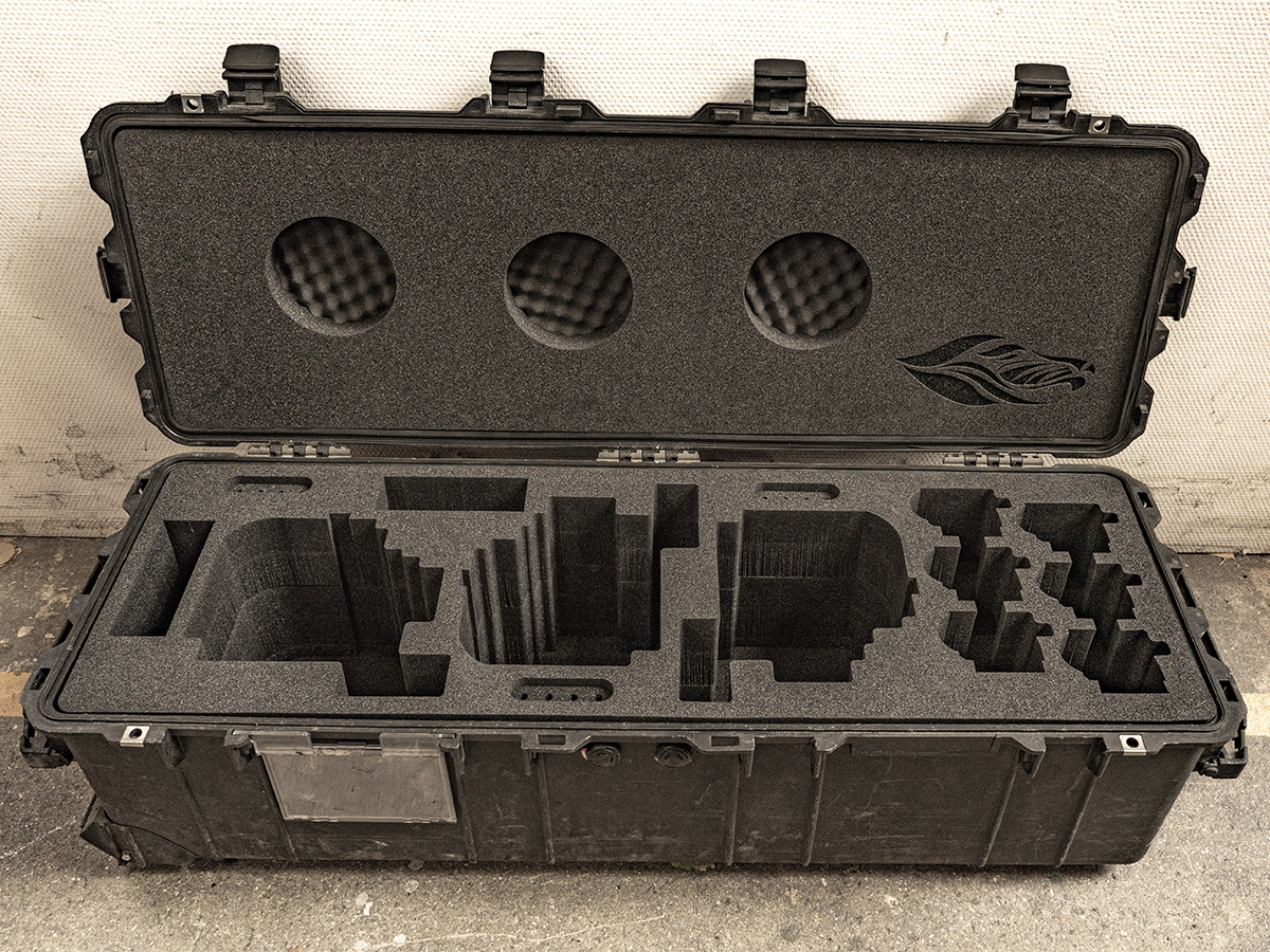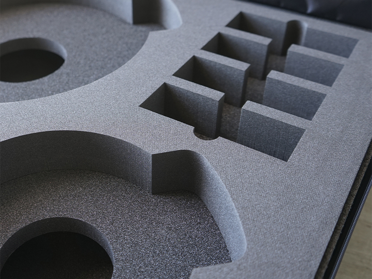 Hos Linde+Larsen har vi både mulighed for vandstråleskæring og fræsning. Det mest benyttede er dog vandstråleskæringen, da det giver et fantastisk rent og skarpt snit i alle skumtyper. Detaljegraden og præcisionen gør at alt udstyr, som skal ligges i kufferten ligger sikkert fastspændt under transport.