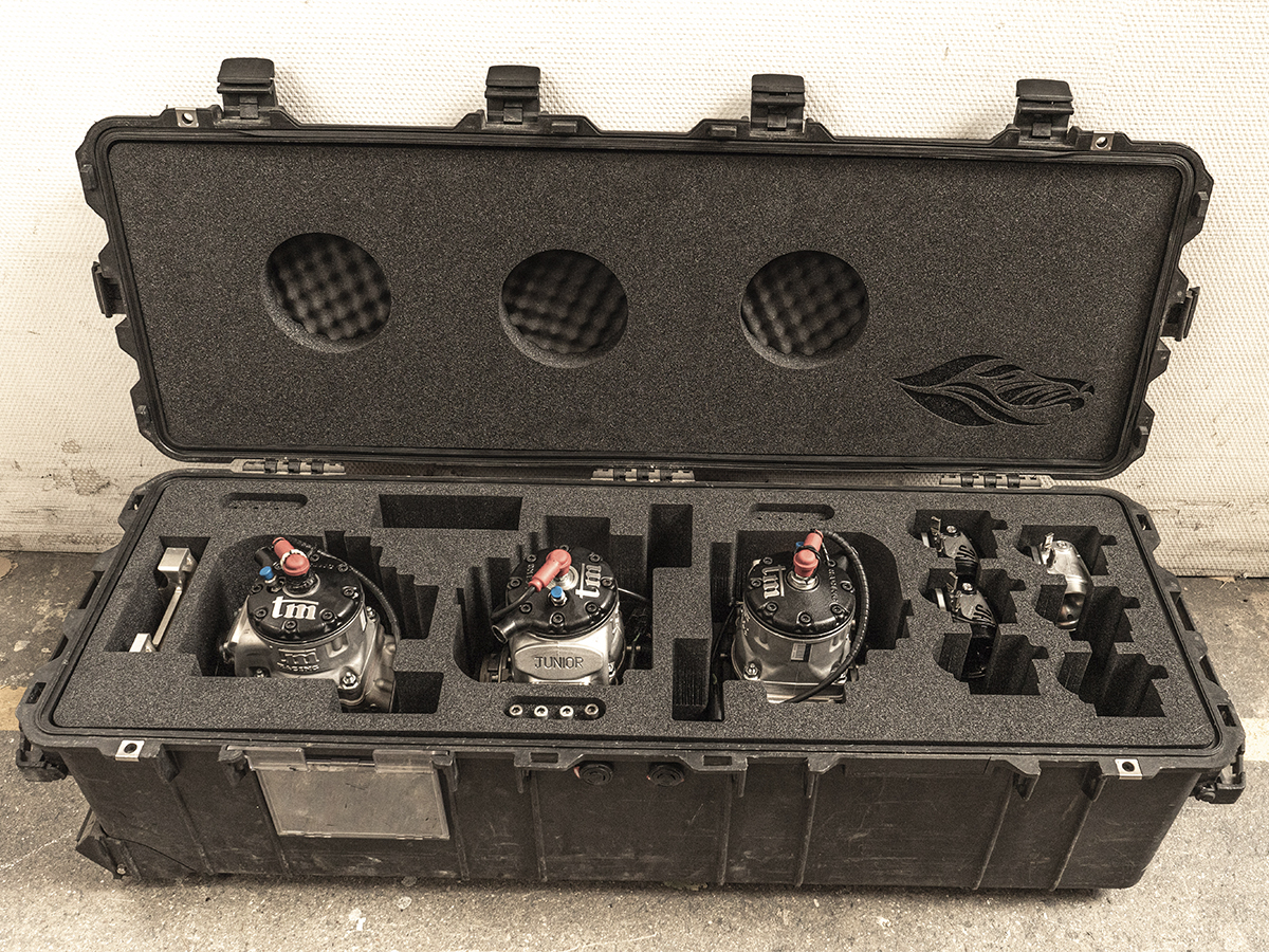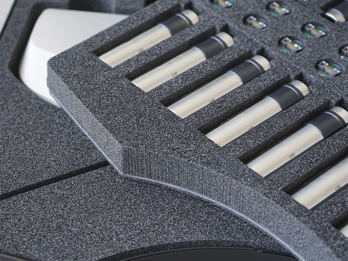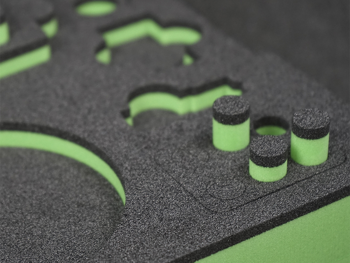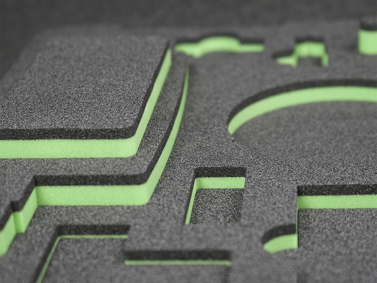 Hos Linde+Larsen har vi både mulighed for vandstråleskæring og fræsning. Det mest benyttede er dog vandstråleskæringen, da det giver et fantastisk rent og skarpt snit i alle skumtyper. Detaljegraden og præcisionen gør at alt udstyr, som skal ligges i kufferten ligger sikkert fastspændt under transport.